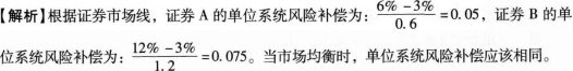 假设证券市场只有证券A和证券B,证券A和证券B的期望收益率分别为6%和12%,β系数分别为0.6和1.2,无风险借贷利率为3%,那么根据资本资产定价模型,...