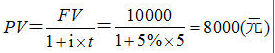 问题 某人希望在5年后取得本利和1万元,用于支付一笔款项。若按单利计算,利率为5%。那么,他现在应存入( )元。