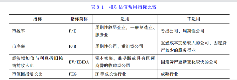 解析 相对估值方法如表8-1所示。