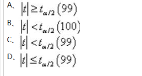 问题 从一批零件中抽出100个测量其直径,测得平均直径为5.2cm,标准差为1.6cm,想知道这批零件的直径是否服从标准直径5cm,因此采用t检验法,那么在显著性水平α下,接受域为( )。