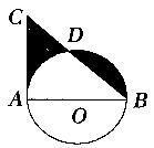 解析 连接AD,观察题图可知,AC与圆相切。△ABC为等腰直角三角形。AB为圆的直径,所以AD⊥肋,可推导出AD=BD,则左右两个弓形面积相等.所以阴影的总面积为等腰直角三角形ABC的一半,即25平方厘米。