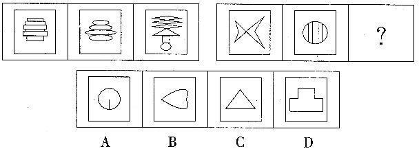 解析 第一组均为有竖直对称轴的图形,第二组均为有水平对称轴的图形。选项申只有B有水平对称轴。
