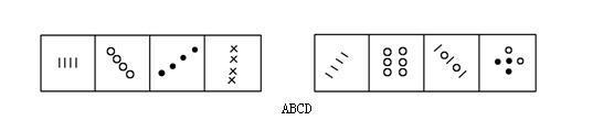 解析 观察图形可以发现,四幅图案均由4个形状相同的小图构成,对照选项,A符合这一规律,故答案为A。