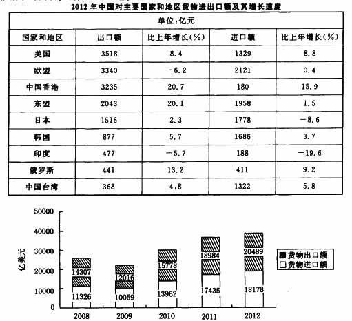 相关内容:2012年,中国,货物,进出口额,进出口,总额,比重