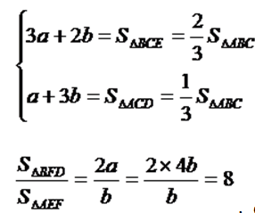 解析 C。几何问题。连接CF,因为BD=2DC,EC=2AE,所以设 ,则 ;设 ,则 。结合图形列方程组得 ,两式相除可 得a=4b。所以 ,C项当选。