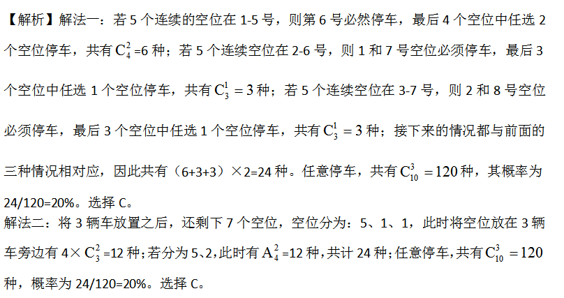 车库中有10个相连的空车位,有3辆车开进车库并随机停在这10个车位上,问剩下的空位中正好只有5个相连空位的概率为()。A.小于10% B.10% C....