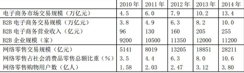 问题 2010~2014年中国电子商务发展状况 若2015年电子商务市场交易规模增速比2014年高3个百分点,则2015年的电子商务市场交易规模约多少万亿元?