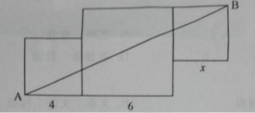 问题 下图是由三个边长分别为4、6、χ的正方形所组成的图形,直线AB将它分成面积相等的两部分,则χ的值是