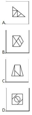 解析 本题考查数量类。观察所给图形,组成元素凌乱,优先考虑数量类规律。九宫格先横向观察,第一行图形封闭面的数量分别为:3、4、5;第二行图形封闭面的数量为:3、4、5;第三行图形封闭面的数量为:3、4、( ),问号处图形应为5个封闭面的图形,排除C项;然后,第一行三角形的数量分别为:1、1、1;第二行三角形的数量分别为:2、2、2;第三行三角形的数量分别为:3、3、( ),问号处图形应有3个三角形,因此,选择B。