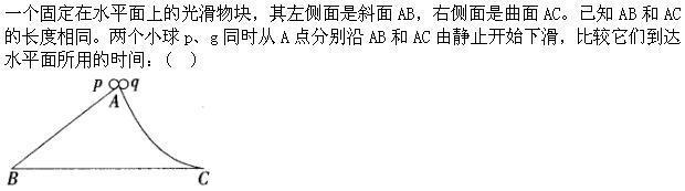 选项 A.q小球先到 B.p小球先到 C.两小球同时到 D.无法确定