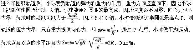 A.球进入竖直半圆弧轨道后做匀速圆周运动 B.若小球能通过半圆弧最高点P,则球运动到P时向心力恰好为零 C. D.若小球恰能通过半圆弧最高点P,则小...