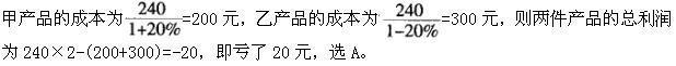 问题 甲乙两种产品,均以240元出售,甲赚了20%,乙赔了20%,则商店盈亏结果为:( )