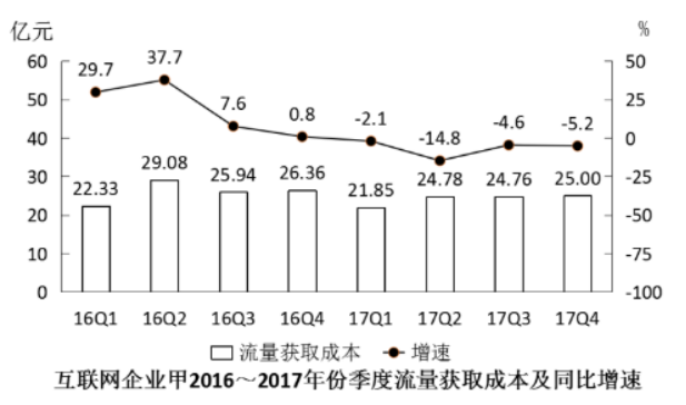 能够从上述资料中推出的是:A.2015年2季度甲企业流量获取成本高于20亿元 B.2016年1季度甲企业流量获取成本高于上季度水平 C.2...