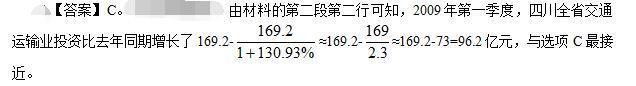 2009年一季度,四川全省交通运输业投资比去年同期增长了: A.73.27亿元 B.82.76亿元 C.95.93亿元 D.98.63亿元