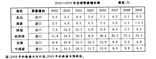 解析 直接观察表格可知,发达国家的出口增长率最高的年份是2004年。所以选择A选项。