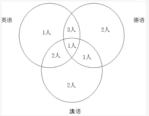 问题 某教研室有12人,其中7人会英语,7人会德语,6人会法语,4人既会英语又会德语,3人既会英语又会法语,2人既会德语又会法语,1人英语、德语、法语三种语言都会。该教研室会且只会两种语言的有多少人?