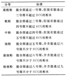 细粉指的是A:能全部通过一号筛,但混有能通过三号筛不超过20%的粉末 B:能全部通过四号筛,但混有能通过五号筛不超过60%的粉末 C:能全部通过五号筛...