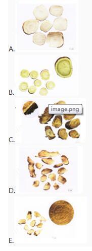 问题 试卷图图A-图E中,图示饮片具有发散风寒、燥湿止带功效的是()
