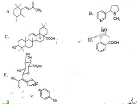 问题 某男,42岁。自诉感冒数日,恶寒渐轻,身热增盛,无汗头痛,目疼鼻干,心烦不眠。经中医辨证为外感风寒、郁而化热。处以柴葛解肌汤,药用柴胡、葛根、甘草、黄芩、羌活、白芷、白芍、桔梗、石膏,水煎服。 处方中荸粮解肌退热其主要成分葛根素的结构是()