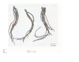 解析 试卷附图中,图1—3所示的药材为商陆,故答案选C。图l—1所示的药材为牛膝,故排除A;图l—2所示的药材为百部,故排除B;图l—4所示的药材为重楼,故排除D;图l—5所示的药材为龙胆,故排除E。