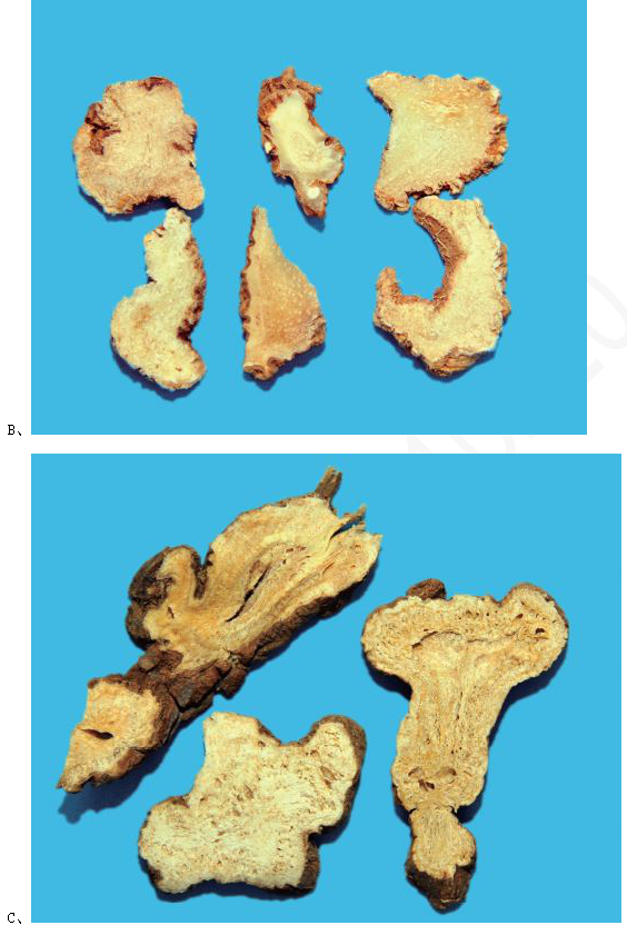 解析 A为天花粉,B为白及,C为白术,D为川芎,E为莪术。