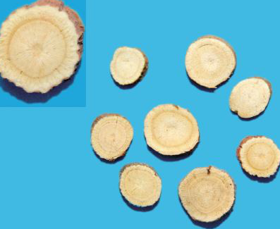 解析 牛膝的横切面特征为筋脉点,甘草的横切面特征为菊花心。