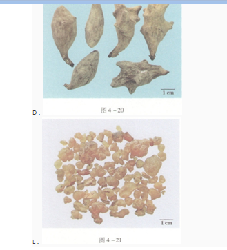 解析 试卷附图中,图4-17所示的药材为灵芝;图4-18所示的药材为冬虫夏草;图4-19所示的药材为血竭;图4-20所示的药材为五倍子,图4-21所示的药材为乳香。故此题选E。
