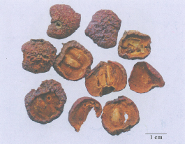 解析 图中药材为山楂,来源于蔷薇科植物山里红或山楂的干燥成熟果实。
