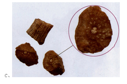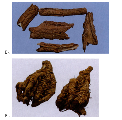 解析 A为延胡索;B为丹参;C为牛膝;D为地骨皮;E为黄连。