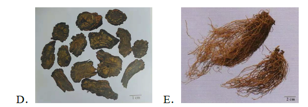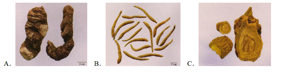 问题 上图中,原植物属于百合科,以干燥根茎入药的图示中药是