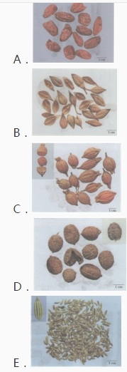 解析 栀子呈长卵圆形或椭圆形,表面红黄色或棕红色,具6条翅状纵棱,棱间常有l条明显的纵脉纹,并有分枝,故图2—25是栀子,90题选C。
